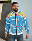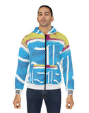 Stay warm and stylish with our zipped fleece jacket, designed with Gen Z in mind. This customizable all-over print zip hoodie boasts seamless design, ensuring no visible white lines at the seams. Featuring a roomy hood, large front pocket, and black zipper, it's the ultimate winter pick. Crafted with 86% Polyester and 14% Cotton, it offers a classic fit and a comfy feel. Rock the look with white thread accents, custom cut and sewn. Proudly assembled in the USA from globally sourced parts.