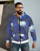 Stay warm and stylish with our zipped fleece jacket, designed with Gen Z in mind. This customizable all-over print zip hoodie boasts seamless design, ensuring no visible white lines at the seams. Featuring a roomy hood, large front pocket, and black zipper, it's the ultimate winter pick. Crafted with 86% Polyester and 14% Cotton, it offers a classic fit and a comfy feel. Rock the look with white thread accents, custom cut and sewn. Proudly assembled in the USA from globally sourced parts.