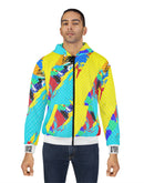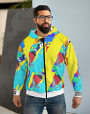 Stay warm and stylish with our zipped fleece jacket, designed with Gen Z in mind. This customizable all-over print zip hoodie boasts seamless design, ensuring no visible white lines at the seams. Featuring a roomy hood, large front pocket, and black zipper, it's the ultimate winter pick. Crafted with 86% Polyester and 14% Cotton, it offers a classic fit and a comfy feel. Rock the look with white thread accents, custom cut and sewn. Proudly assembled in the USA from globally sourced parts.