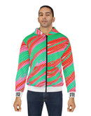 Stay warm and stylish with our zipped fleece jacket, designed with Gen Z in mind. This customizable all-over print zip hoodie boasts seamless design, ensuring no visible white lines at the seams. Featuring a roomy hood, large front pocket, and black zipper, it's the ultimate winter pick. Crafted with 86% Polyester and 14% Cotton, it offers a classic fit and a comfy feel. Rock the look with white thread accents, custom cut and sewn. Proudly assembled in the USA from globally sourced parts.