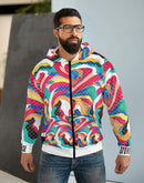 Stay warm and stylish with our zipped fleece jacket, designed with Gen Z in mind. This customizable all-over print zip hoodie boasts seamless design, ensuring no visible white lines at the seams. Featuring a roomy hood, large front pocket, and black zipper, it's the ultimate winter pick. Crafted with 86% Polyester and 14% Cotton, it offers a classic fit and a comfy feel. Rock the look with white thread accents, custom cut and sewn. Proudly assembled in the USA from globally sourced parts.